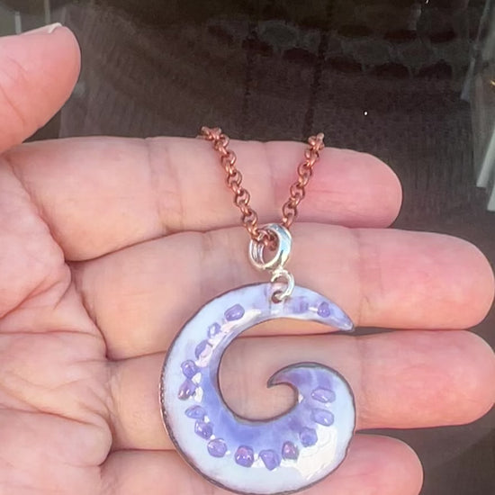 Ocean Wave Enamel Pendant Necklace – Opal White with Purple Colors – Handcrafted Surfing Coastal Jewelry
