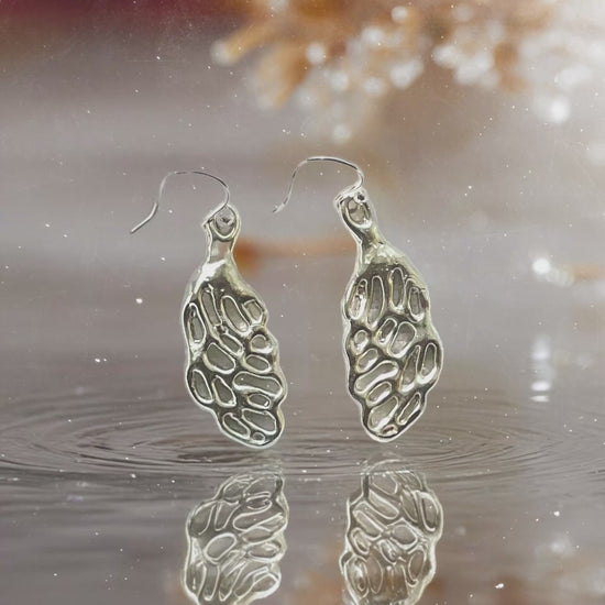 Add a touch of elegance to any outfit with these sterling silver earrings, featuring brilliant white sapphires. Expertly handmade from high quality 925 sterling silver, these earrings were inspired in Spring maple seeds, modeled in wax and cast in silver. They offer both durability and shine. The sparkling white sapphires catch the light beautifully, giving you a subtle and sophisticated sparkle for everyday wear or social occasions. Some photos show the jewelry on a digital model to help visualize size and style. The actual piece you’ll receive is shown in the product-only images